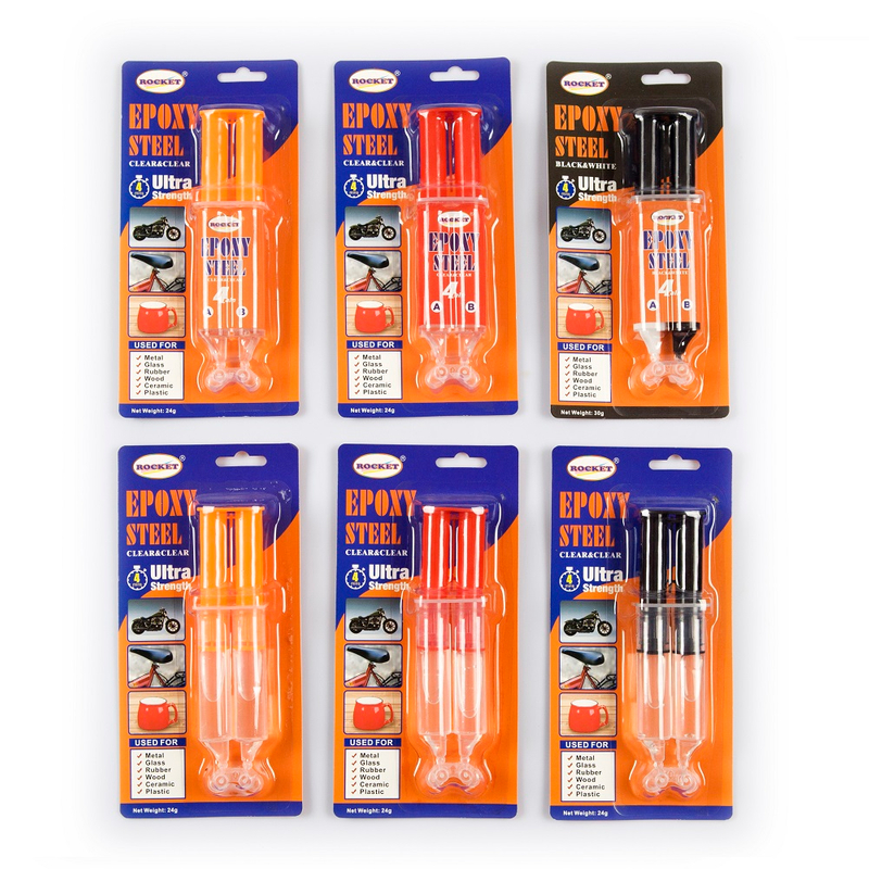 Rocket 环氧针筒AB胶是一种快速固化、多用途两部分环氧树脂,可在大多数表面(包括瓷砖、陶瓷、玻璃、木材和金属)上提供牢固而持久的粘合。当厚度小于 15 密尔时,它可固化形成清晰、透明的粘合。它的混合比例为 1:1,5 分钟内凝固,24 小时内完全固化。