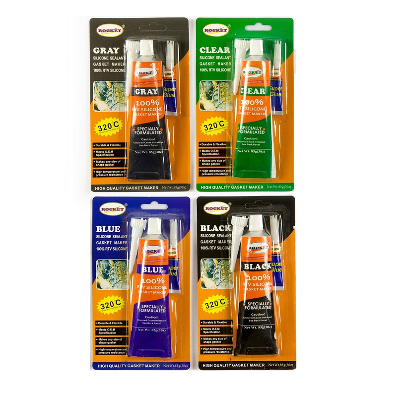 Rocket 免垫胶/密封胶是一种通用密封剂粘合剂、RTV(室温硫化)硅酮,设计用于家庭或机械装配应用。当产品暴露在空气中的湿气中时,固化后,有机硅会在大多数表面上形成坚韧、防水、防霉的密封。它不会收缩或破裂,耐风化,对传感器安全,非常适合许多家庭和汽车应用。